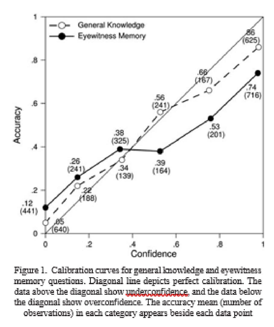 Why do we care about overconfidence? Well, it has some practical consequences. A study of eye witnesses found that they too were overconfident, more so than for general knowledge questions: