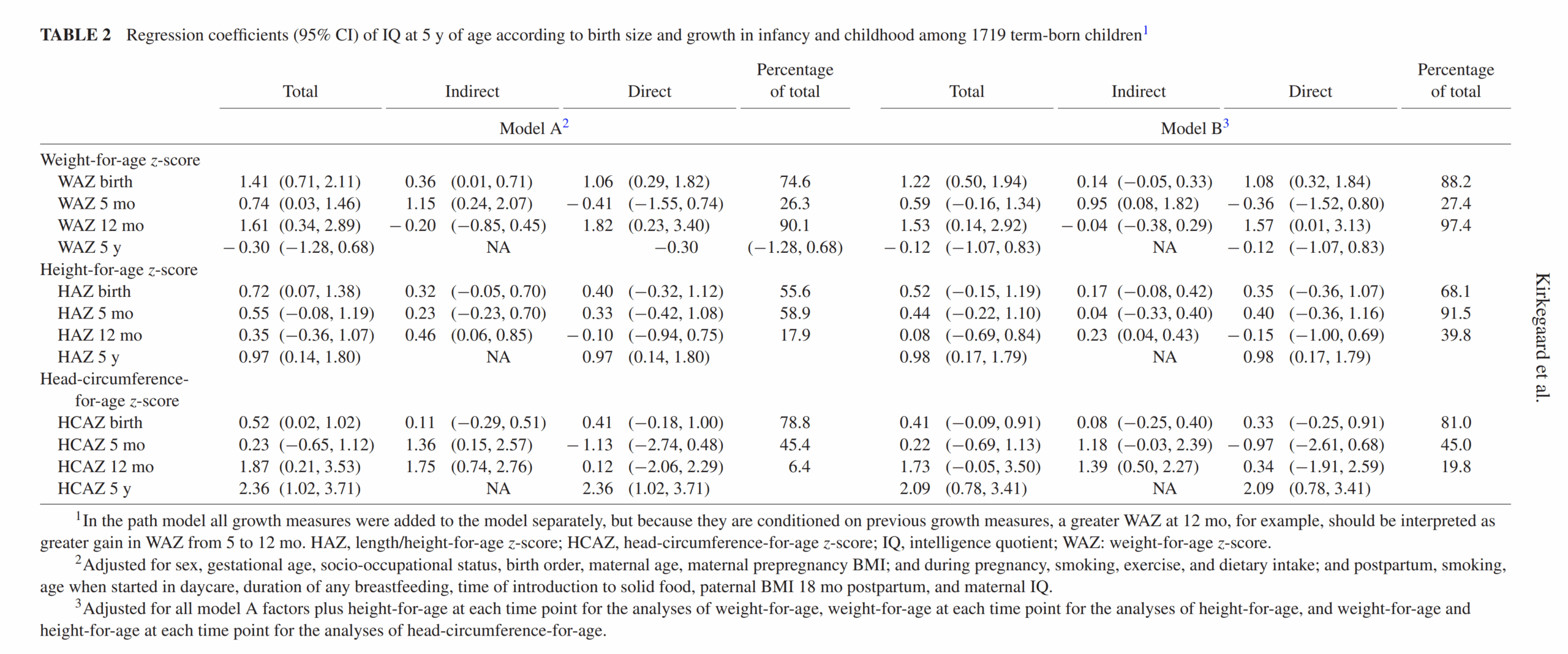 While any parent would probably feel good about their newborn having above average values, these metrics aren't that important. The most obvious one, head circumference, presumably relates to brain size later in life, which relates to intelligence. But children grow at different speeds, so how much does it really predict? I found a study, fittingly from Denmark and improbably even authored by a not-Emil Kirkegaard (2947 people in Denmark have this last name, thus 0.05% or 1 in ~2000 people):