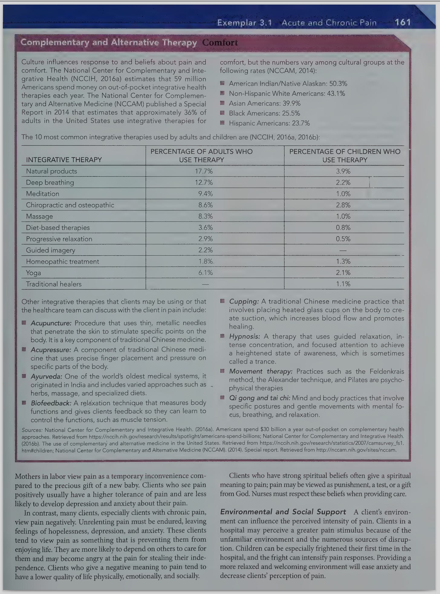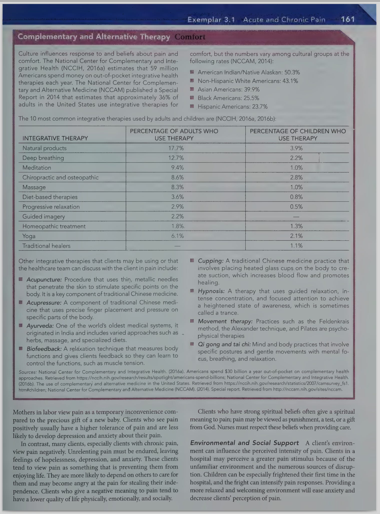 In the Arab-Islamic heritage, pain is not considered a divine punishment for sins but rather a test of faith. Therefore, Muslims are required to have patience and endure pain, as a sign of strong faith, in return for God’s mercy and forgiveness. However, Muslims are required to seek treatment and pain relief when necessary because needless pain and suffering are frowned upon,98 and many Christians stress seeking atonement and redemption.99 Religion evidently provides more than just a distraction from suffering. The social network and support provided by religions may be associated with lower pain levels, and religious belief may improve self-esteem and sense of purpose.100 Further research is needed on relations among pain, responses to management of pain, and individuals’ religious beliefs.