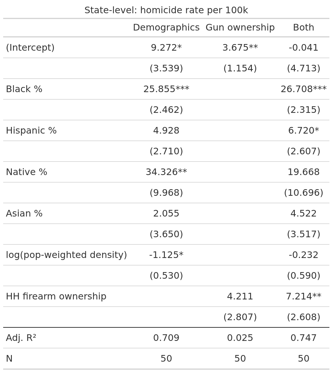 First, though, let’s look at the state-level regressions for predicting homicide rates: