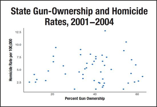The reader is left to interpret that guns cause homicides. It’s correct if we include suicides but it’s not true for homicides as a whole: