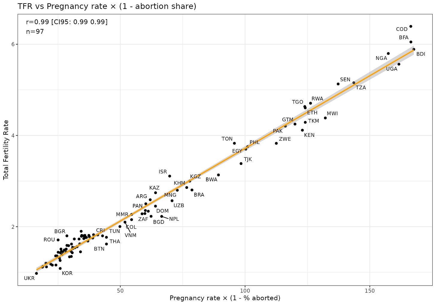 Cross-sectional fit of TFR ~ pregnancy_rate * (1-aborted%):