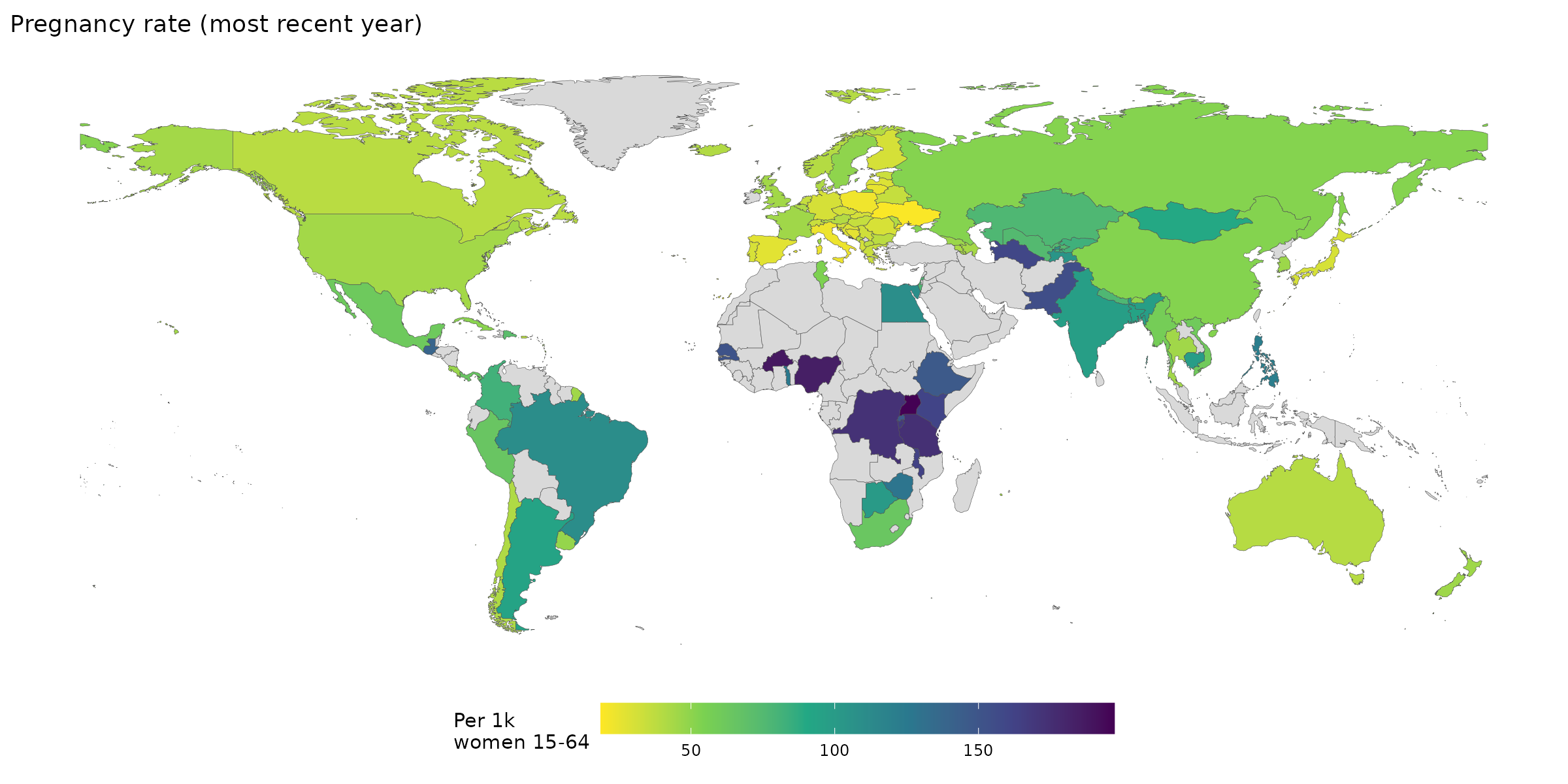 For 30 European countries, GAID had no data but Eurostat did. We filled these gaps with Eurostat counts. Eurostat reports only legally induced abortions, which may undercount where clandestine abortion exists (though this is minimal in most of the EU).
