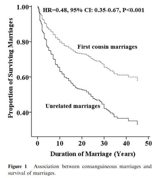 Saadat, M. (2015). Association between consanguinity and survival of marriages. Egyptian Journal of Medical Human Genetics, 16(1), 67-70.