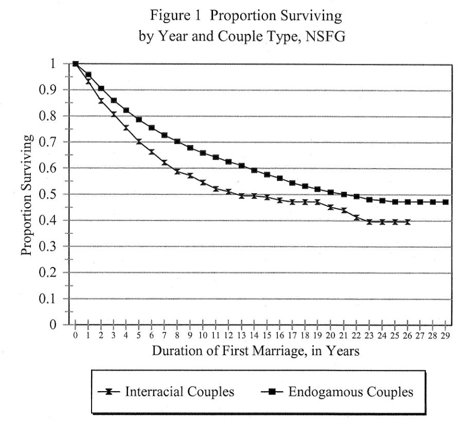 Bratter, J. L., & King, R. B. (2008). “But will it last?”: Marital instability among interracial and same‐race couples. Family Relations, 57(2), 160-171.