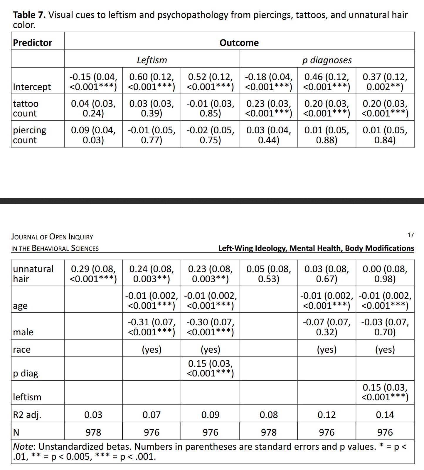 Hu, M.,& Kirkegaard, E. O. W.(2026). Left-wing ideology, mental health and body modifications. Journal of Open Inquiry in the Behavioral Sciences, 5(1).