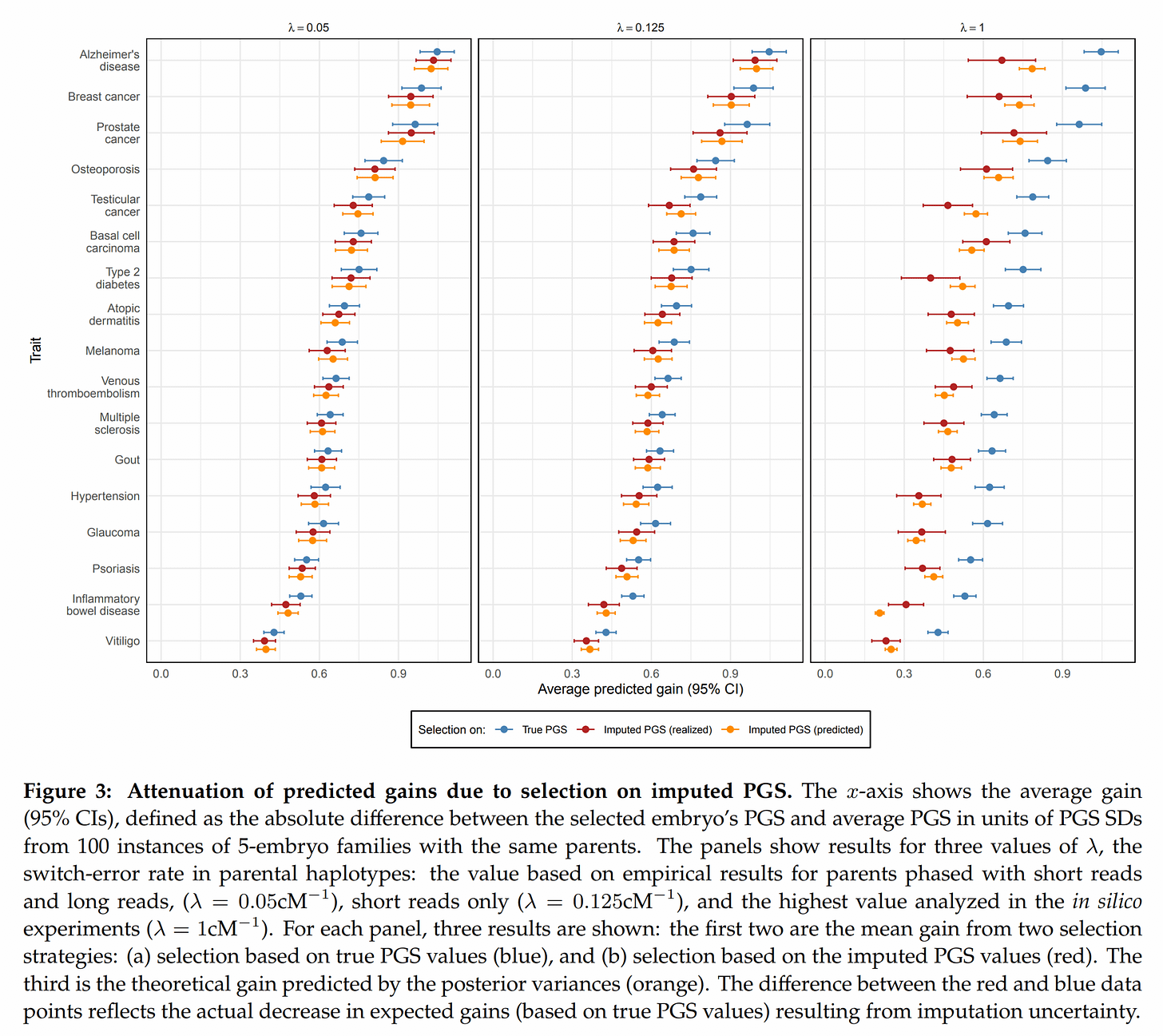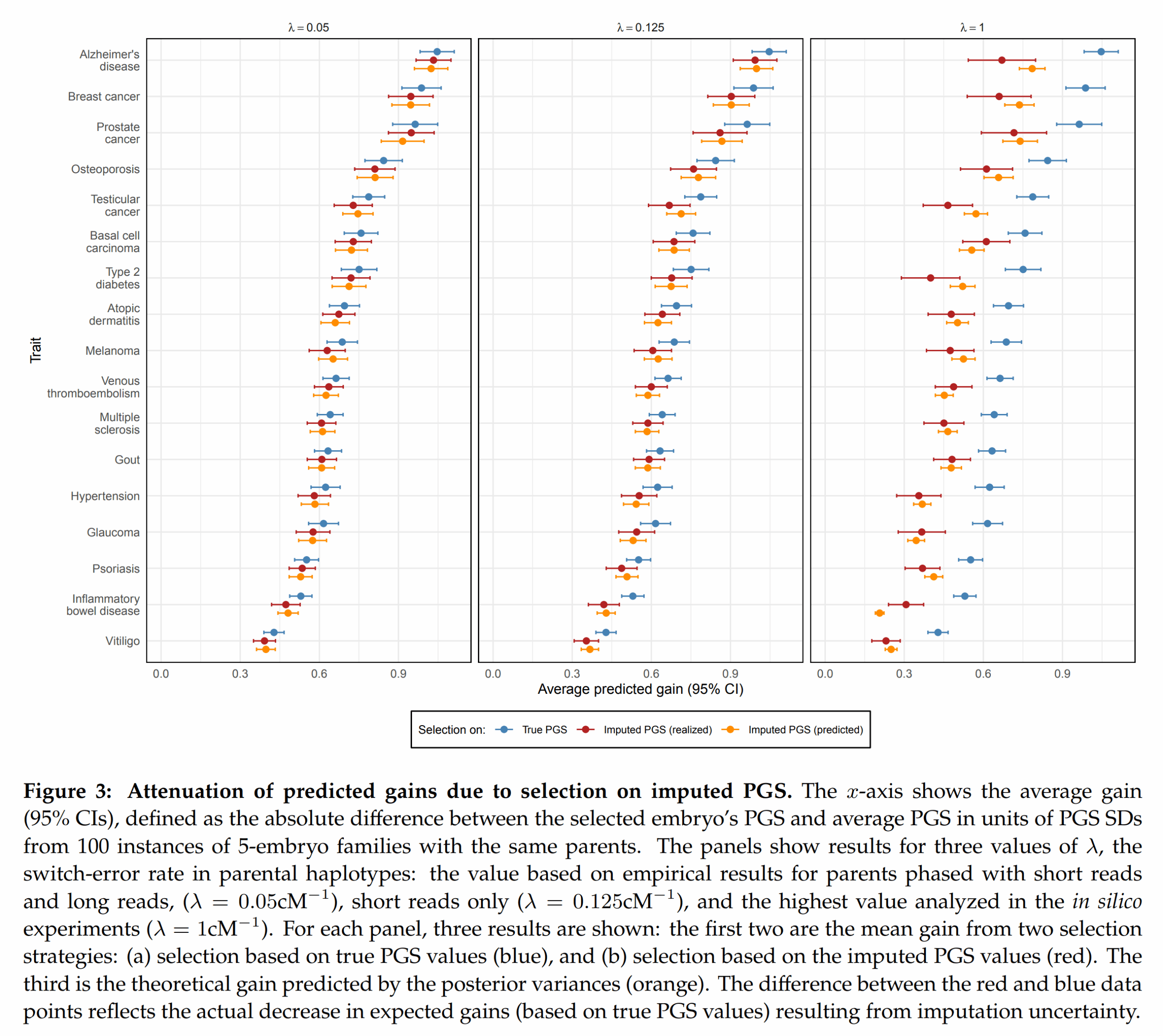 The general alternative to this imputation approach is to measure the DNA of embryos using better technologies. There are a variety of options from single cell sequencing, deep sequencing, to petri dish sequencing (some DNA flows out of the embryo). The other companies used these approaches (Genomic Prediction uses arrays, Nucleus uses deep sequencing). These methods are probably better in general, but their problem is that they create huge bottlenecks since clinics aren’t able to do these advanced genotyping methods. Thus, one would have to ship frozen embryo tissue samples to wherever the lab is. The imputation approach only requires that clinics do the same thing they are already doing.