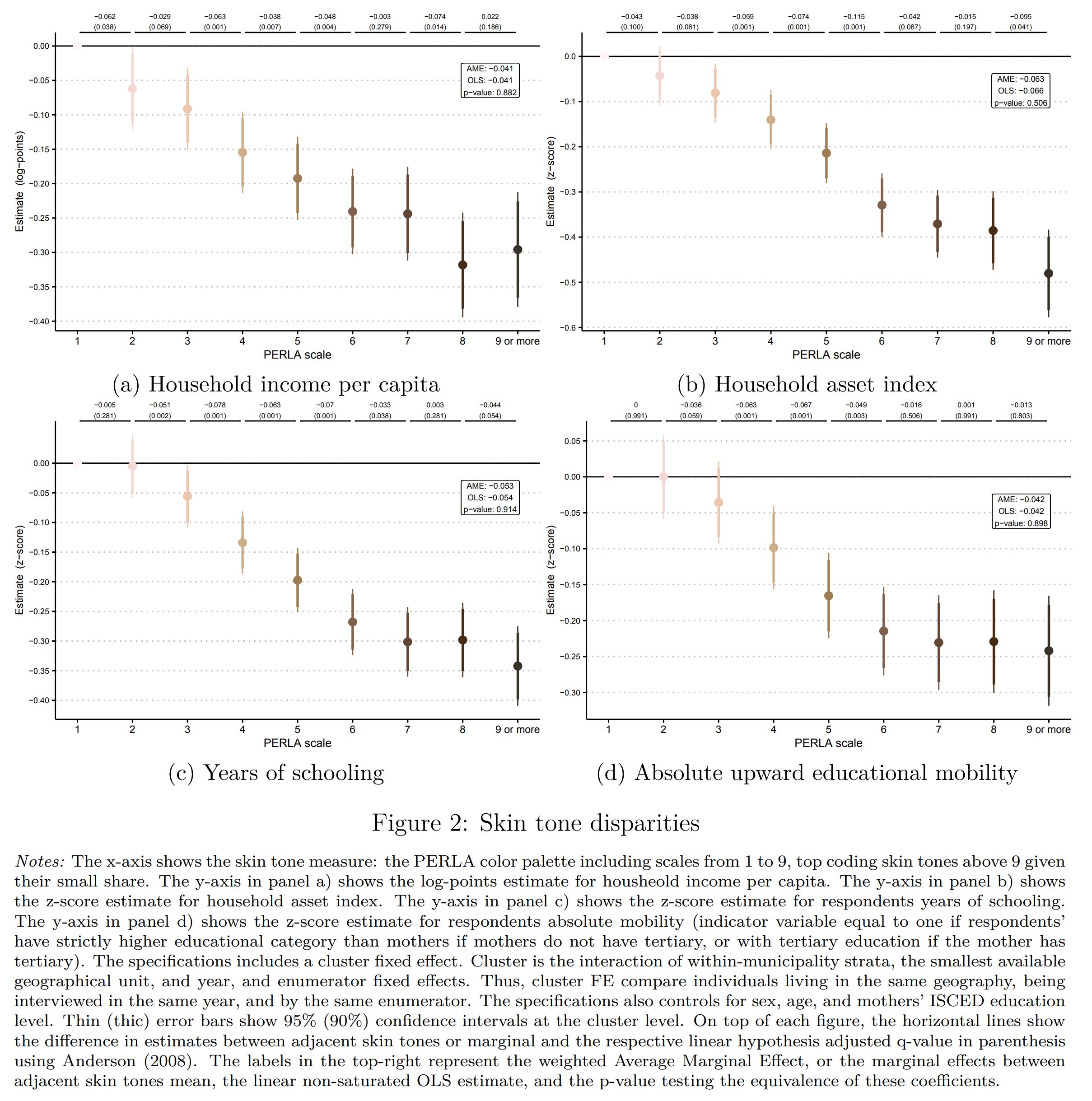 Woo-Mora, L. G. (2025). Unveiling the Cosmic Race: Skin tone and intergenerational economic disparities in Latin America and the Caribbean. Journal of Development Economics, 103594.