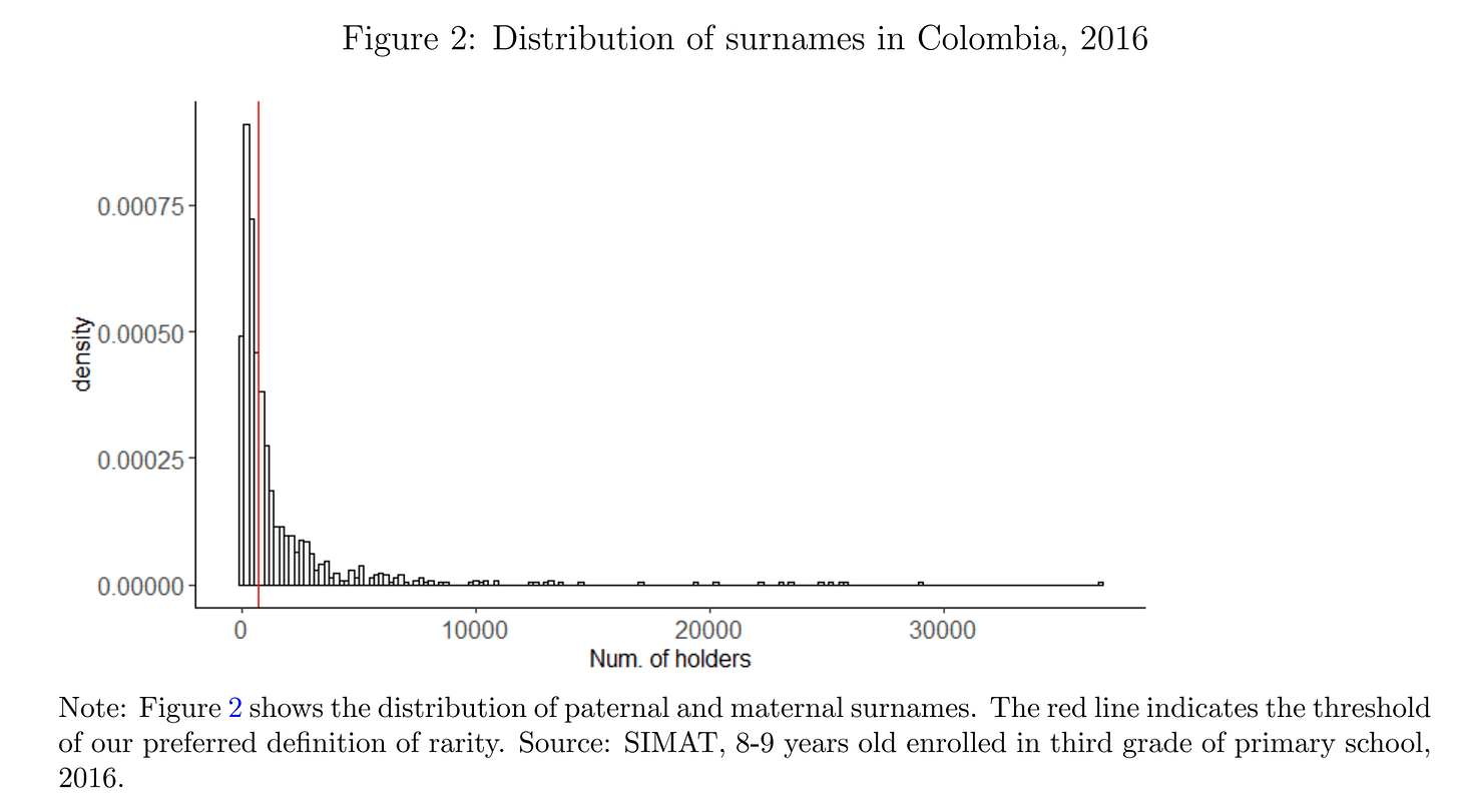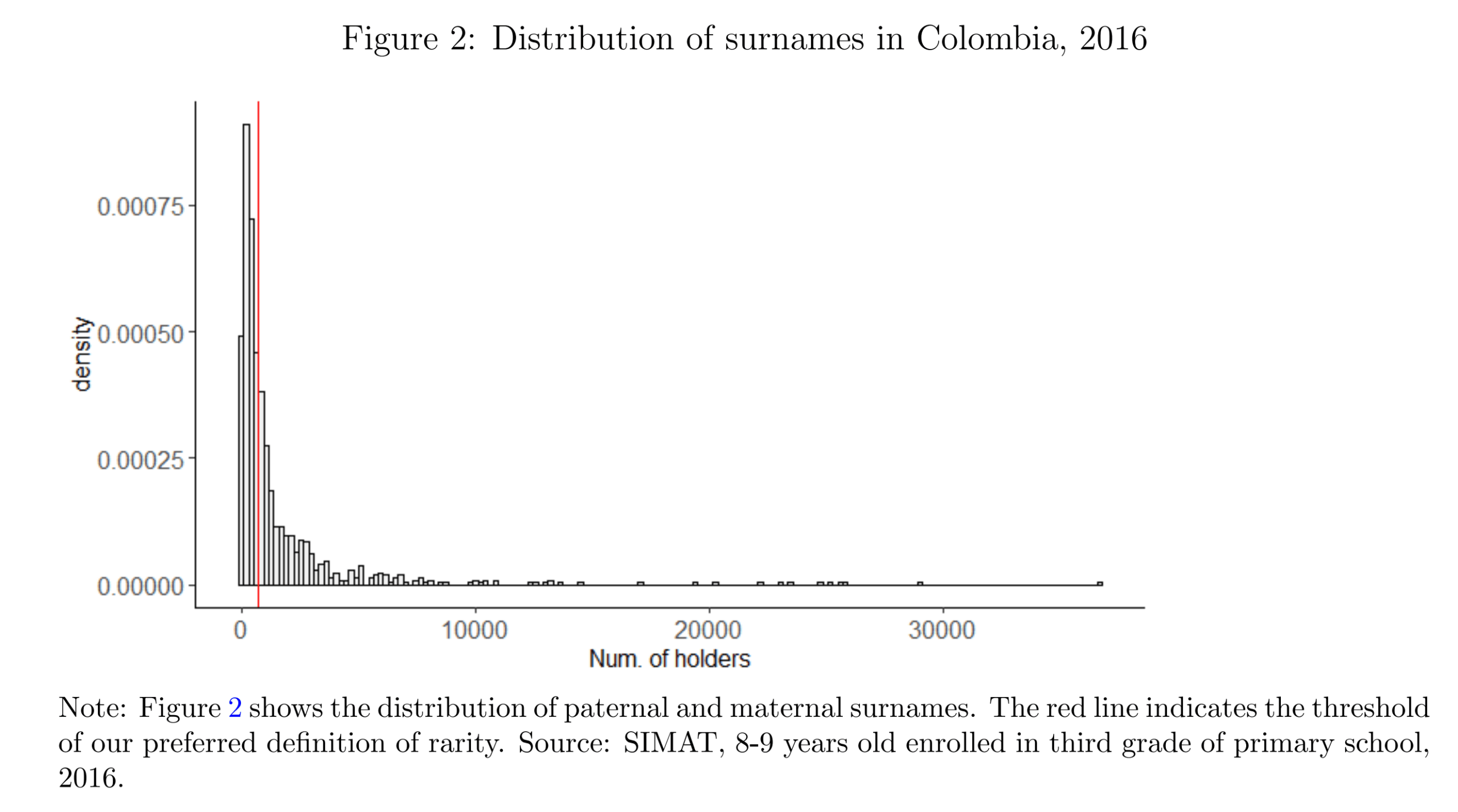 Jaramillo-Echeverri, J., & Álvarez, A. (2025). Does ancestry shape access to education? Evidence from surnames in Colombia. Journal of Development Economics, 103626.
