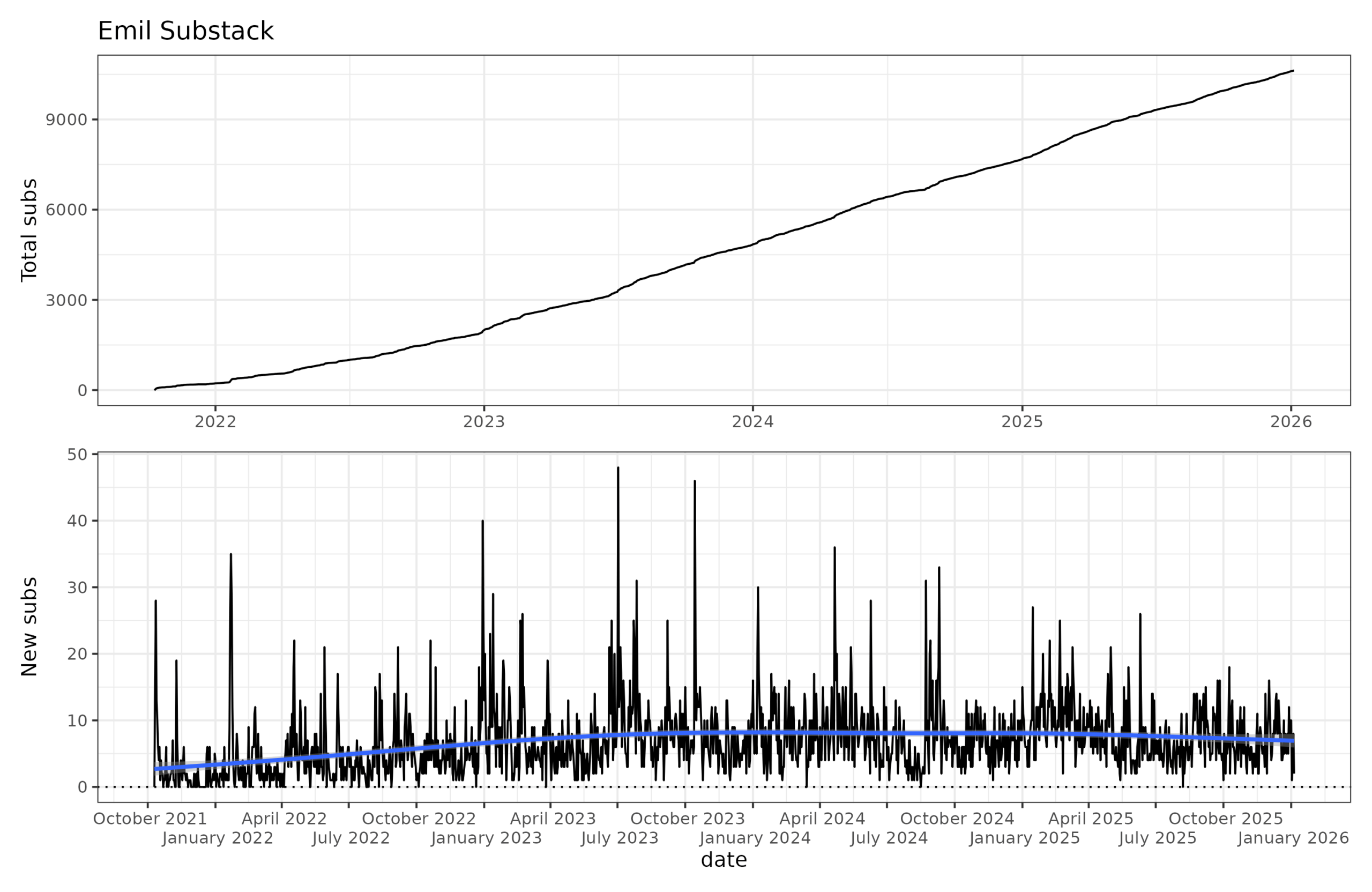 Substack provides a fairly decent subscriber growth chart: