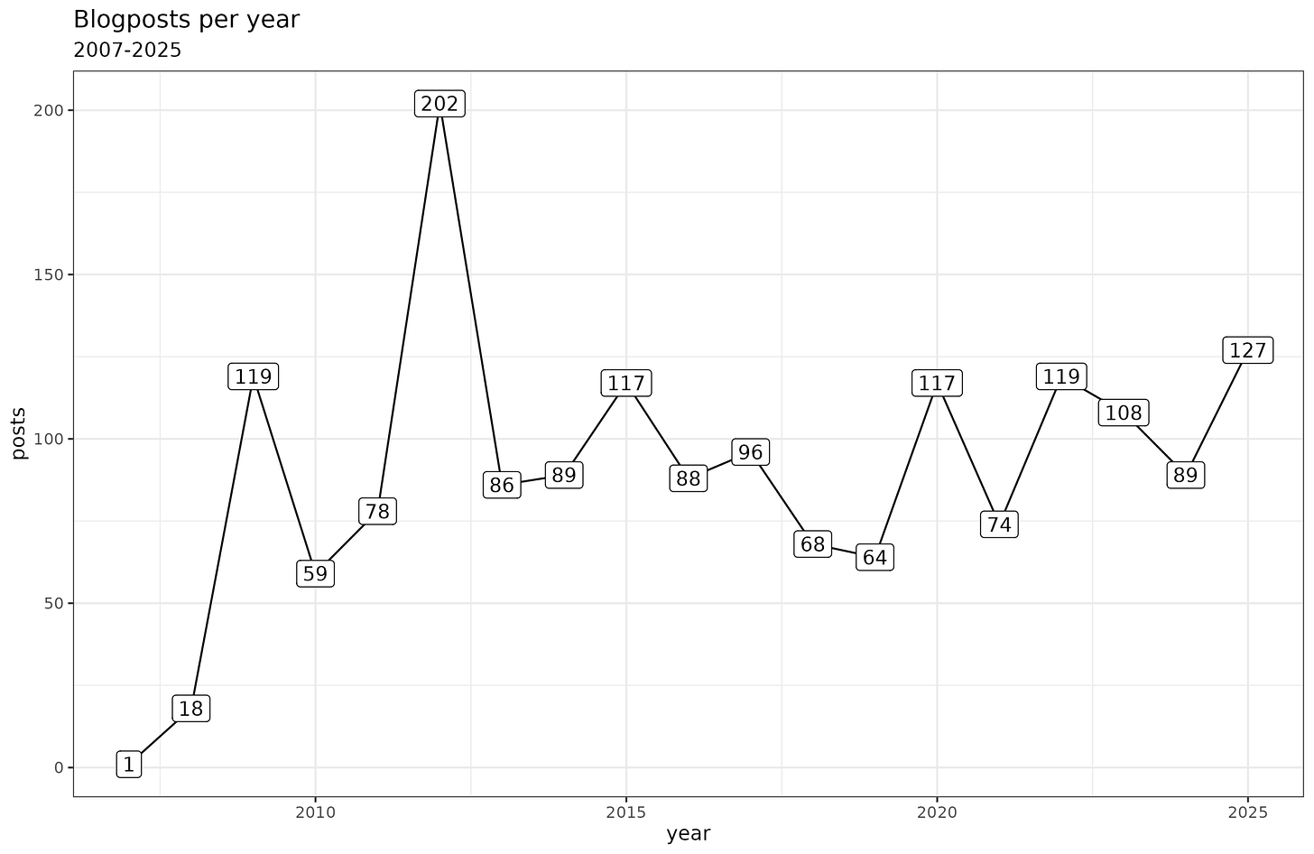 2025 turns out to have been the most blogging year since 2014. I don’t feel like I tried writing more than the usual amount, and in fact, since becoming a father in August, time has been more constrained, and yet productivity rose. Maybe we can attribute this to the general pattern of fathers/married men being more productive (various papers on this). Or maybe it’s the growing desire to satisfy my readers and subscribers.