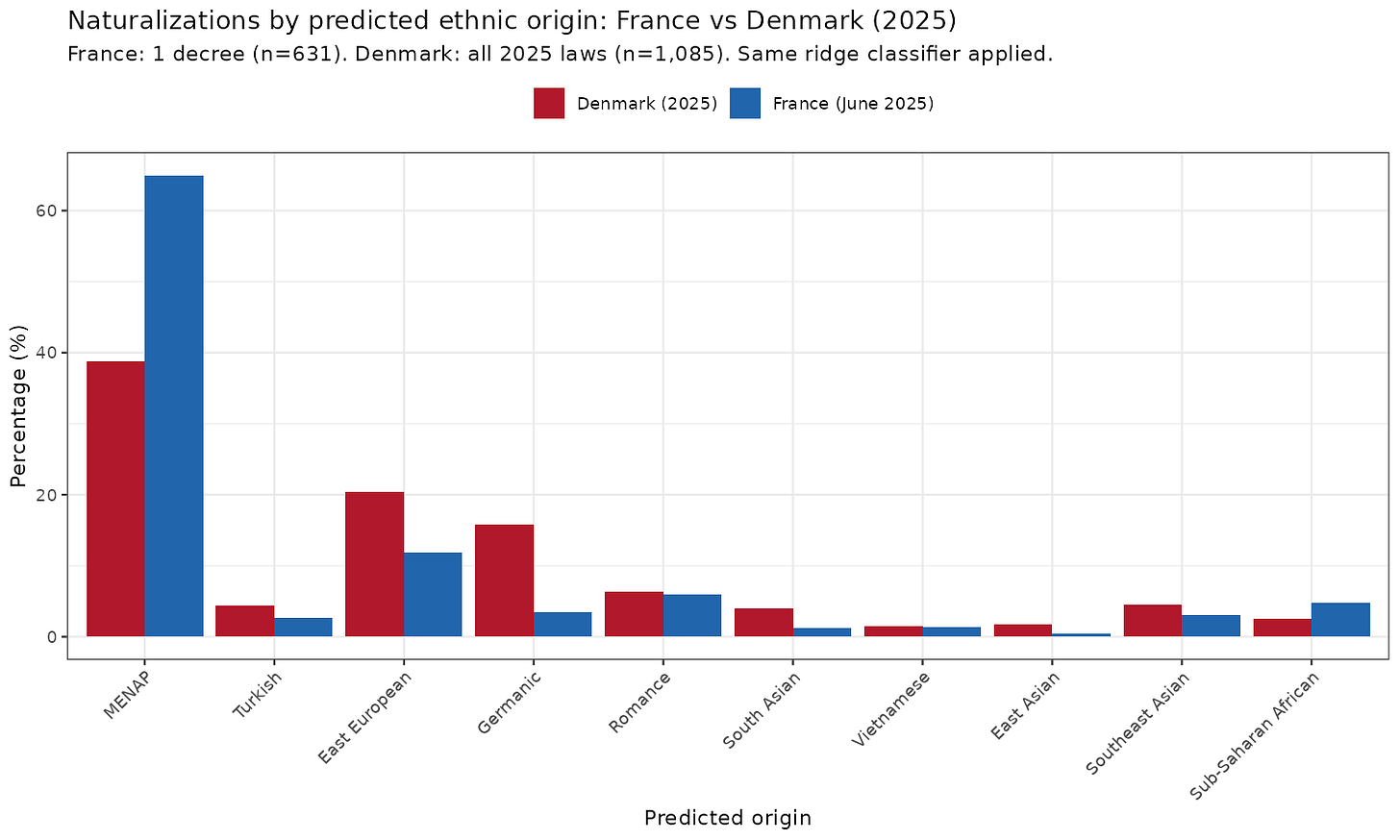 France is getting more Muslims than Denmark in % terms. I only used one law from June 2025 because they are in PDF format and behind anti-scraping measures, so getting all the files may be a hassle. If some French person can get these for me, I can apply the prediction model.