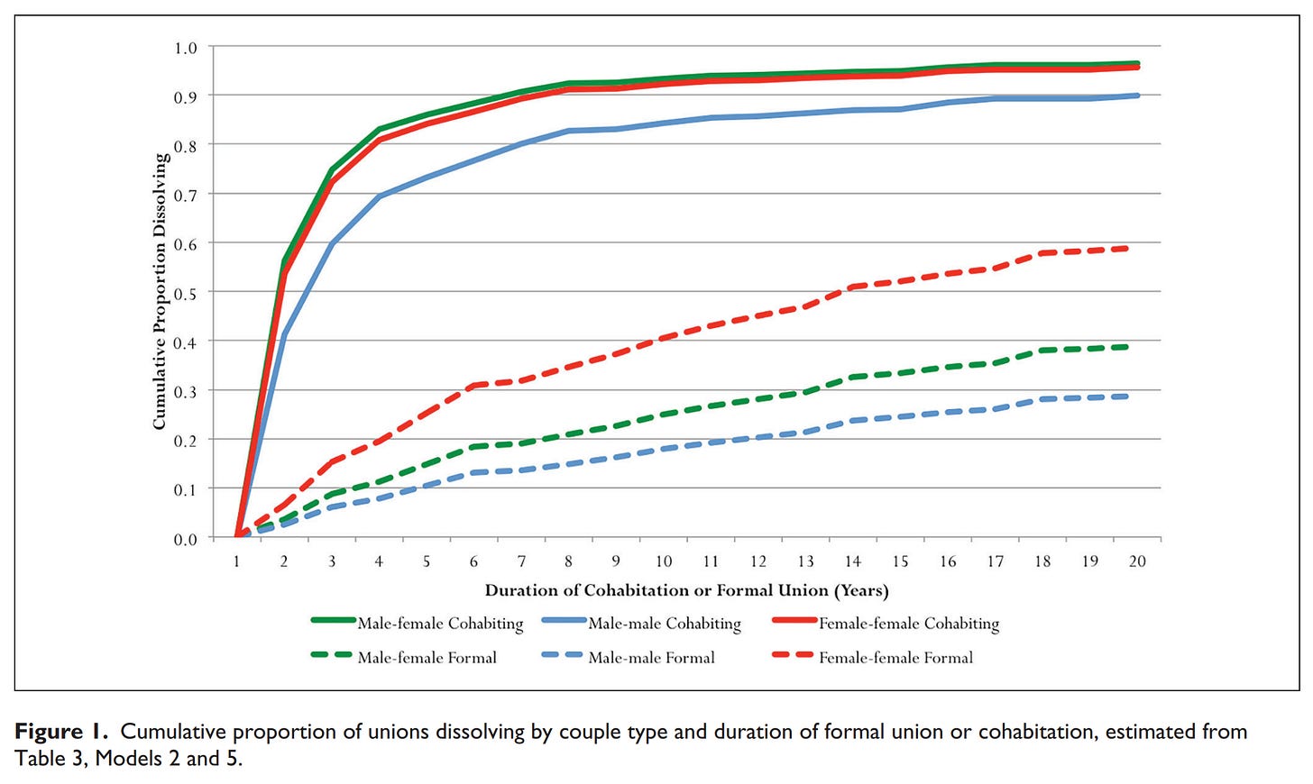 The figure has been redrawn but the results check out (Comparative Couple Stability: Same-sex and Male-female Unions in the United States, 2019). The original is: